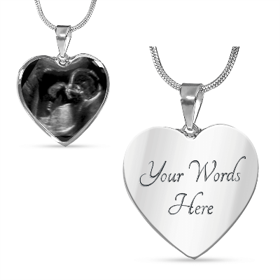 Este hermoso collar para madre en forma de corazón es un recuerdo personal que atesorará para siempre. Puede elegir su propia foto especial, como una foto de ultrasonido para el frente y, si lo desea, se puede grabar un mensaje personal en la parte posterior.